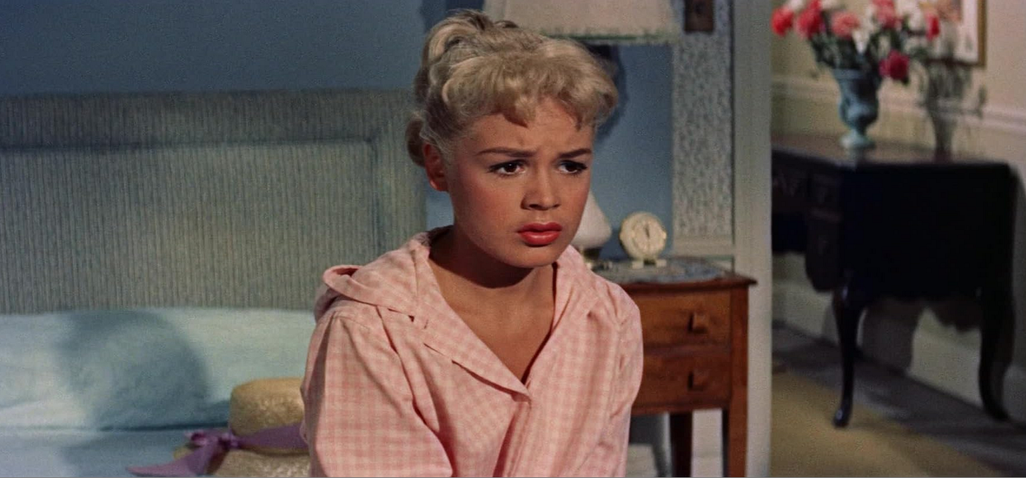 The film’s refusal to turn Francine into a teenage sexpot is made evident by her loose-fitting bathing suits, created by Canadian-born swimsuit maker Rose Marie Reid, a devout Mormon and one of the most celebrated swimsuit designers in Hollywood. Reid tended to prefer modest designs, and the swimsuits she created for Dee look baggy on the actress and make her appear even younger than 16.