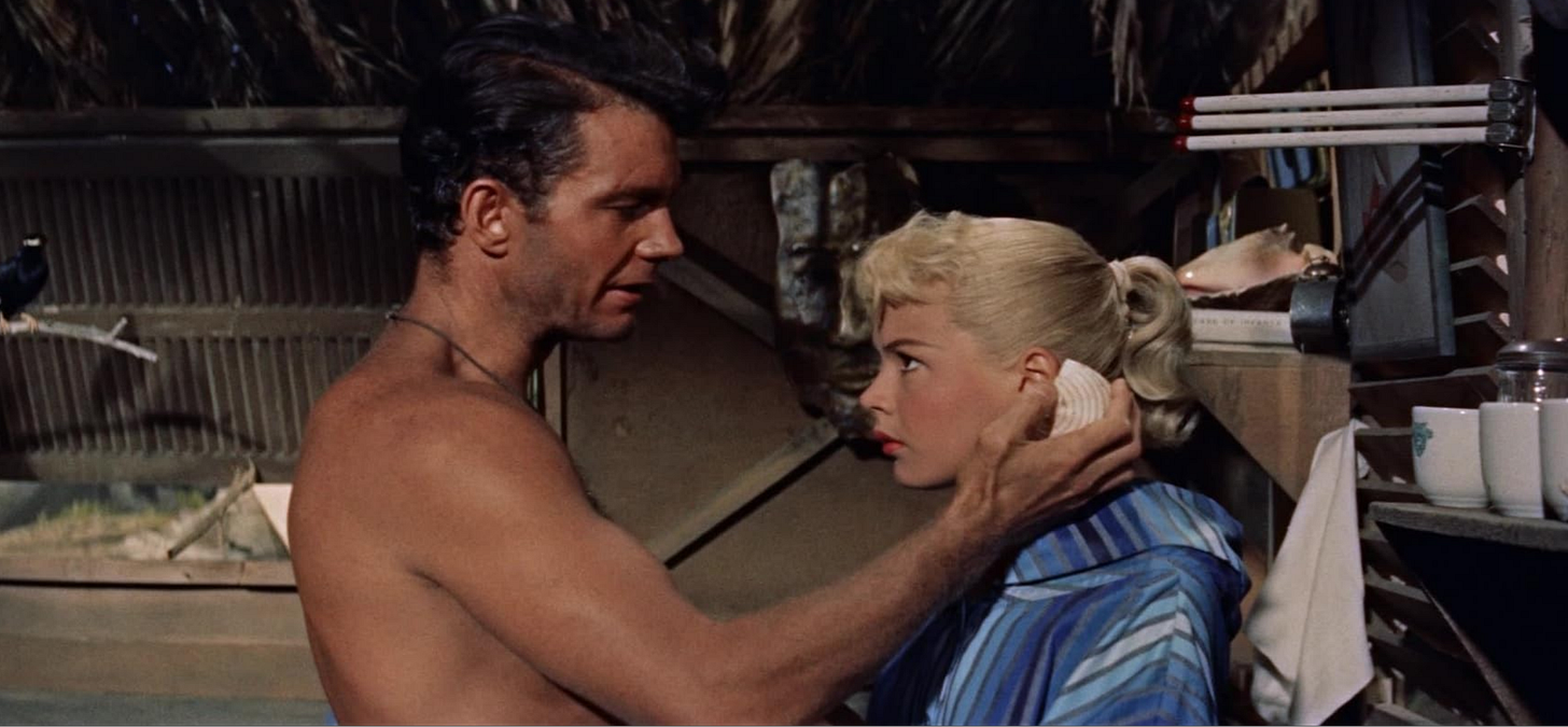 The movie’s first half follows Francine’s efforts to learn how to surf and fit in with a group of teenage male surfers (whom she calls “Go-Heads”) with nicknames like Waikiki, Stinky, Lord Byron, Hot Shot, and Lover Boy. She falls for one of the surfers, Moondoggie (James Darren), a high school hot shot who’s emerging as one of the lead surfers of the group.